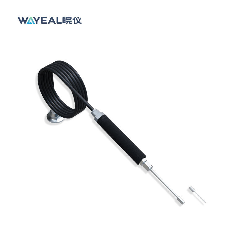 La sonde renifleur est un dispositif d'échantillonnage utilisé pour la localisation à courte portée et la détection des fuites d'hélium sur les surfaces des pièces. Dotée d'une structure à trou d'épingle unique et d'un tube capillaire, elle offre une sensibilité exceptionnellement élevée (5×10⁻⁹ Pa·m³;/s) et une réponse rapide. Elle est compatible avec divers détecteurs de fuites, et son embout détachable facilite le nettoyage. Avec une longueur standard typiquement comprise entre 2,5 et 5 mètres, sa fonction principale est d'aspirer l'hélium qui fuit et de le délivrer au détecteur de fuites, permettant une localisation précise des points de fuite.